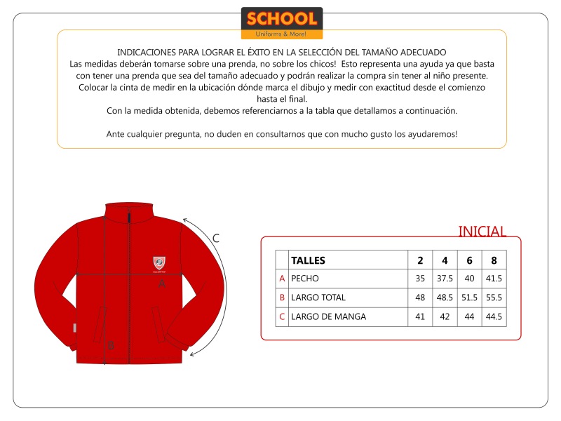 Campera confeccionada en micro-polar doble, anti-peeling; con cierre y cuello alto.  Posee bolsillos y el escudo institucional bordado.  Es una prenda liviana y resistente, ideal para el uso de los chicos y su lavado y secado son muy rápidos.