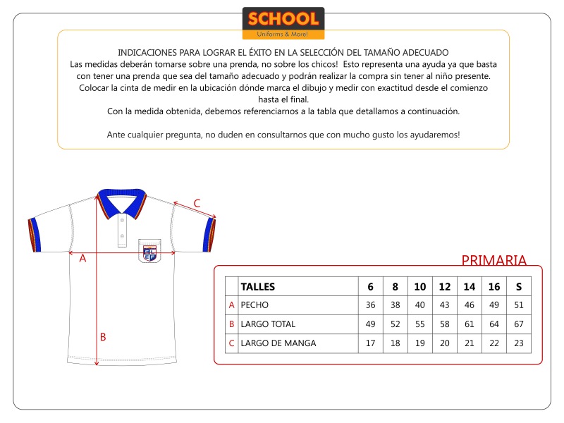 Remera de piqué con cuello tipo "polo", unisex.  La tela blanca tiene filtro UV para proteger la piel de los niños.  El filtro UV no se pierde con los lavados. El cuello y los  puños, confeccionados  en tejido de punto (algodón-acrílico);  no decoloran ni modifican su formato.  Los botones están reforzados y todas las prendas tienen un botón de repuesto en su interior.  En todas nuestras prendas encontrarán una etiqueta dónde colocar los datos personales.