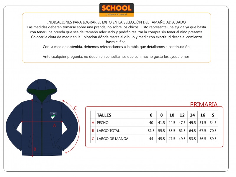Campera confeccionada en micro-polar doble, anti-peeling; con cierre y capucha.  Posee bolsillos y el escudo institucional bordado.  Es una prenda liviana y resistente, ideal para el uso de los chicos y su lavado y secado son muy rápidos.